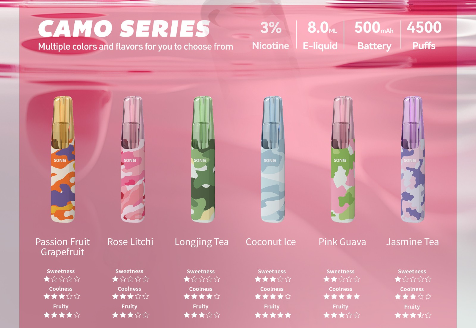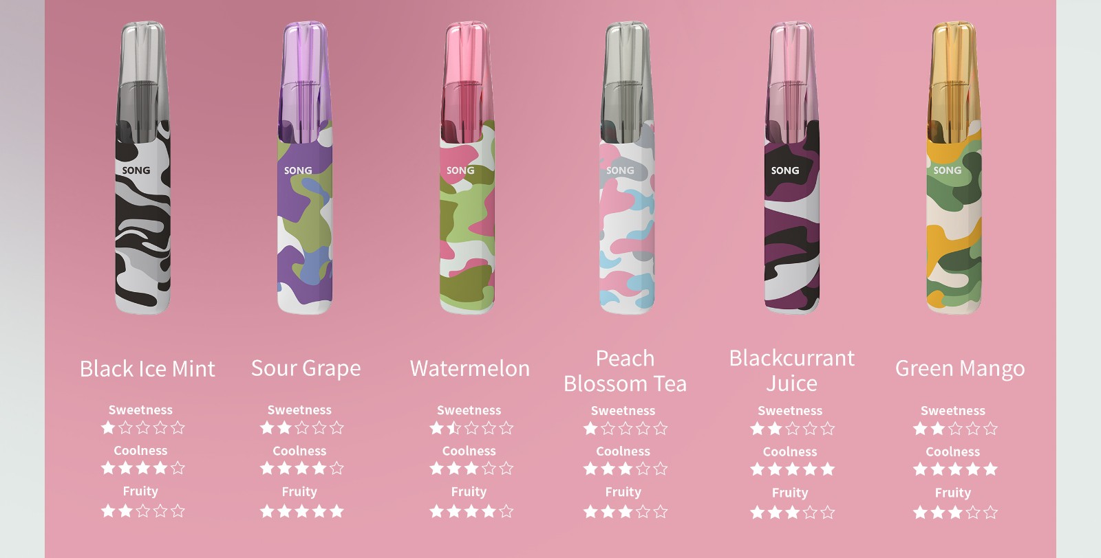 다홍파오 차/장미 리치/마라캐야 자몽/수박/블랙 아이스 민트/자스민 차/롱징 차/복숭아꽃 차/참외/새콤한 포도/콜라 아이스/레몬 파인애플
